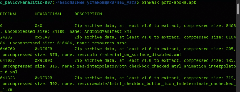 После анализа исследования сетевого трафика, переходим к статическому анализу приложения. На этом этапе целью будет анализа подтверждение его природы .apk приложения, поиск следов упаковки и маркеров обфускации, а также выявление признаков, указывающих на вредоносное поведение.