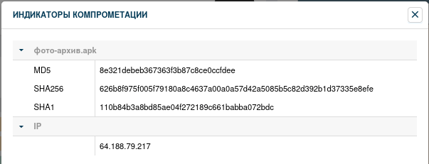 Во вкладке "Индикаторы компрометации" отображаются индикаторы компрометации вредоносного поведения файла (а также его вредоносных дампов, конечно же при их наличии) по результатам проверки в «песочнице».