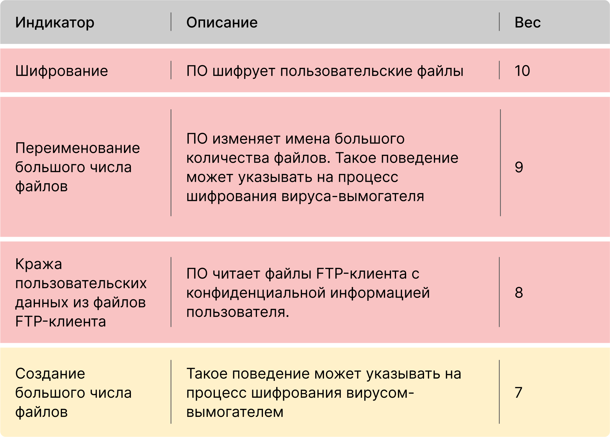 Вредоносные и подозрительные индикаторы динамического анализа, зафиксированные в процессе анализа, представлены в таблице 2: