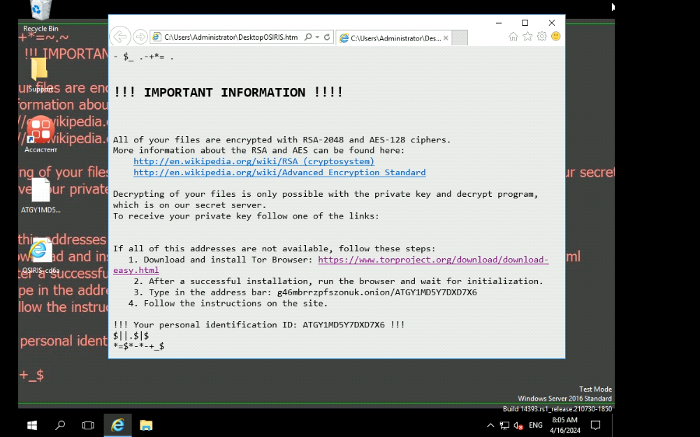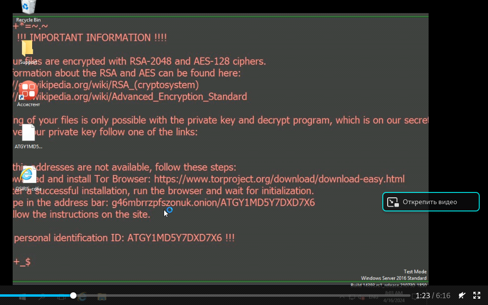 С помощью вкладки «Запись исследования», можно посмотреть, что произошло после запуска шифровальщика Locky. После шифрования файлов системы, ПО создает текстовый файл, в котором злоумышленники оставляют информацию по поводу расшифровки и т.п.