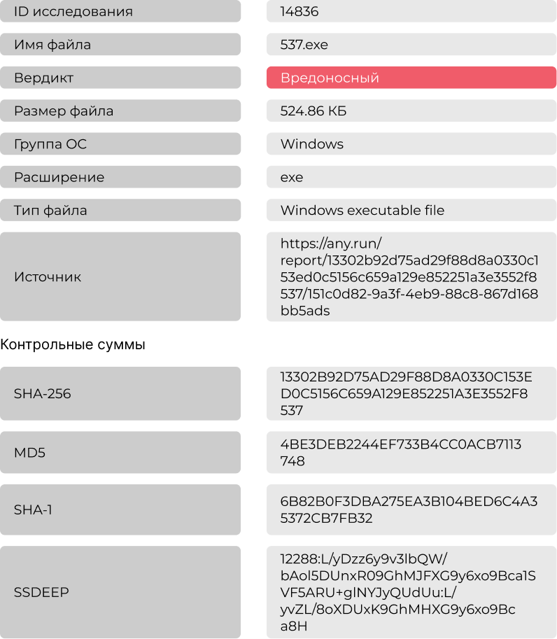 Во вкладке «Источники вердикта» строится графическая карта с источниками и их вердиктами, а также общим вердиктом по исследуемому файлу после статического анализа
