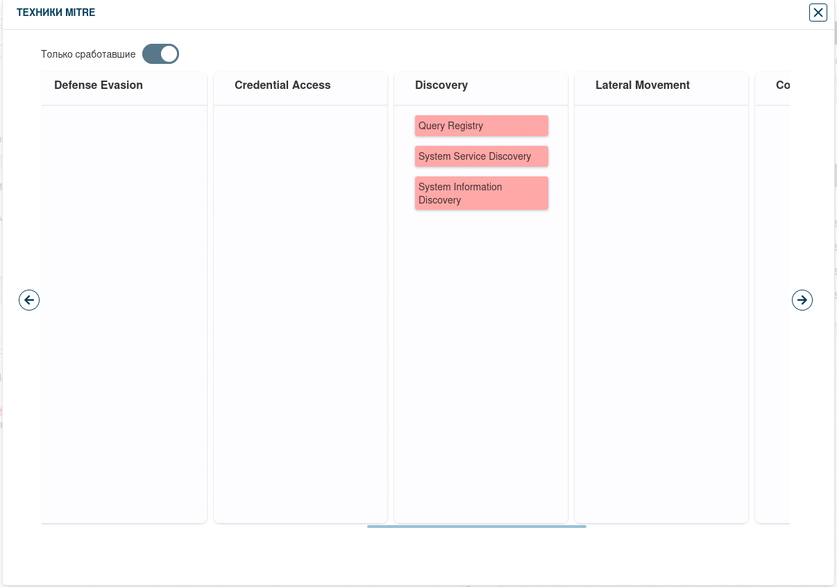 - System Service Discovery - злоумышленники собирают информацию о зарегистрированных сервисах, чтобы формировать последующее поведение. Для получения информации могут применяться утилиты операционной системы Tasklist и Net, а также другие инструменты.