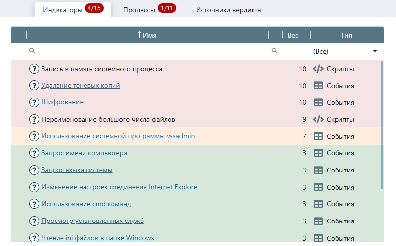 Вкладка «Источники вердикта» показывают все источники (статические и динамические), которые сработали и вынесли вредоносный, подозрительный или безопасный вердикт