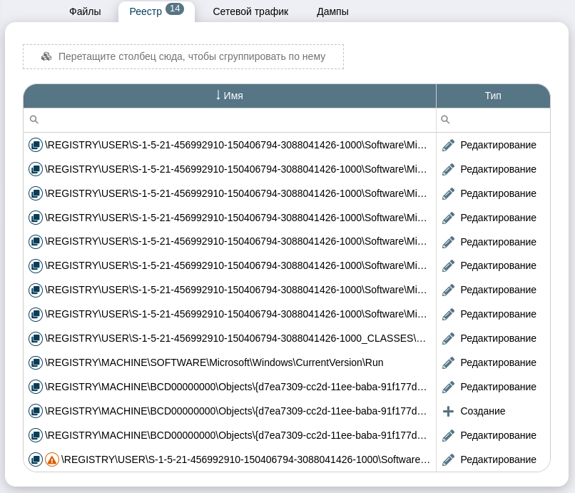 На вкладке «реестр» можно рассмотреть изменения, внесенные программой в реестр.