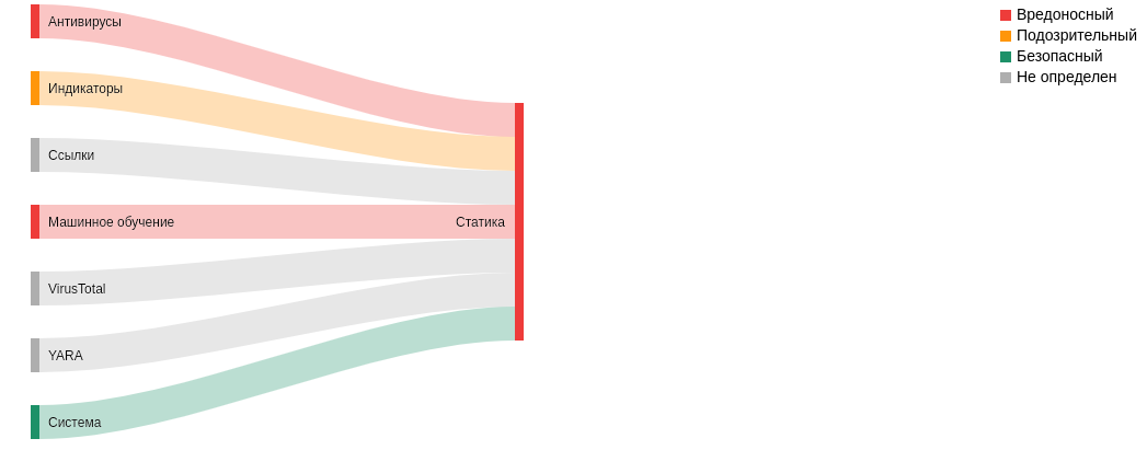 Во вкладке «Источники вердикта» строится графическая карта с источниками и их вердиктами, а также общим вердиктом по исследуемому файлу со стороны статического анализа (Рисунок 3).