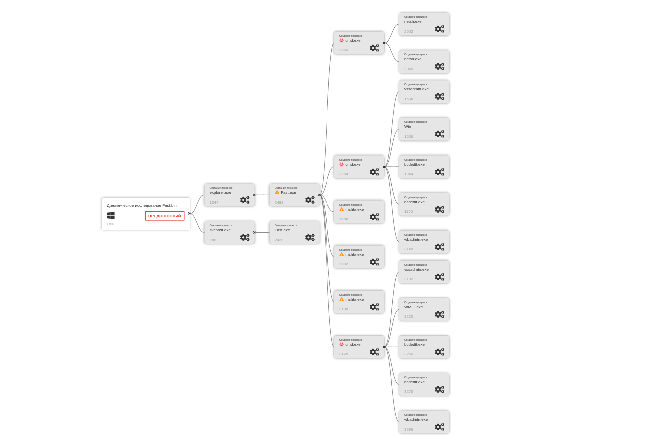 На графической карте можно увидеть наглядно, как и в какой последовательности проходят процессы после запуска вредоносного файла.