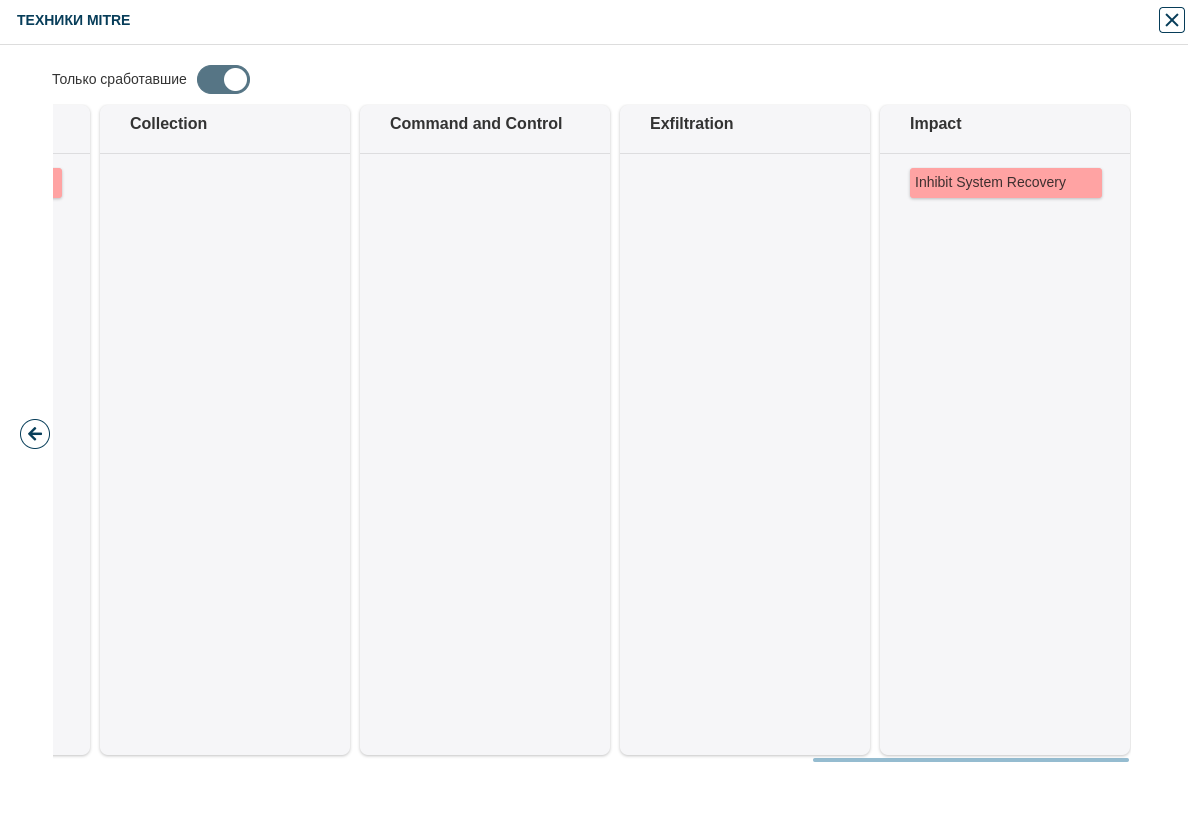 - Inhibit System Recovery - злоумышленники могут удалять данные операционной системы и отключать службы, предназначенные для помощи в восстановлении поврежденной системы, чтобы предотвратить восстановление. Злоумышленники могут использовать утилиты Windows для отключения или удаления функций восстановления системы, чтобы усилить последствия уничтожения или шифрования данных.