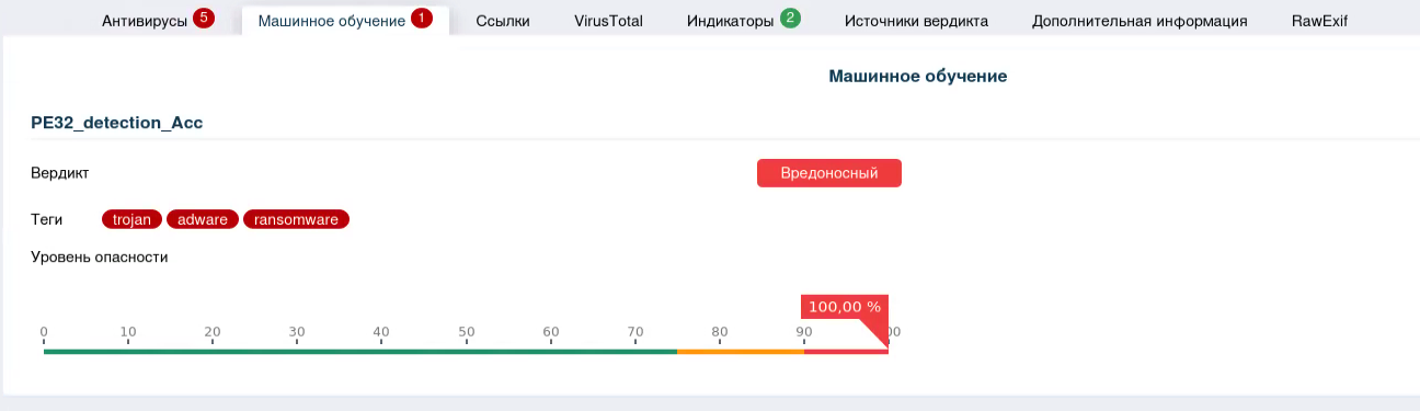 Рисунок 2. Анализ файла машинным обучением.