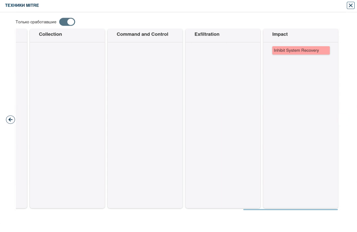 • Inhibit System Recovery - злоумышленники могут удалять данные операционной системы и отключать службы, предназначенные для помощи в восстановлении поврежденной системы, чтобы предотвратить восстановление. Злоумышленники могут использовать утилиты Windows для отключения или удаления функций восстановления системы, чтобы усилить последствия уничтожения или шифрования данных.
