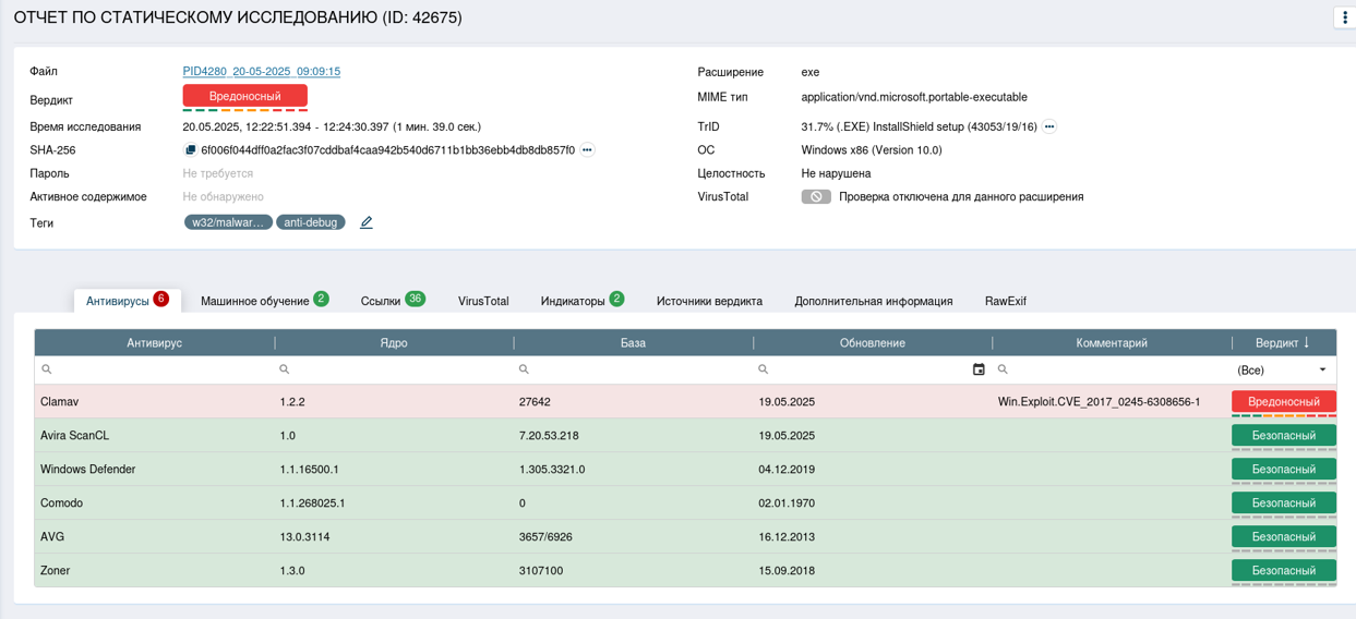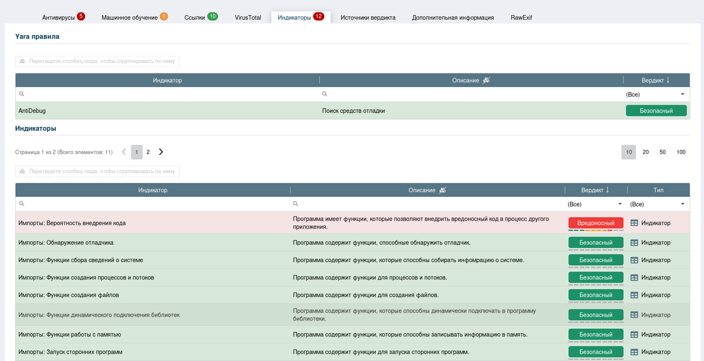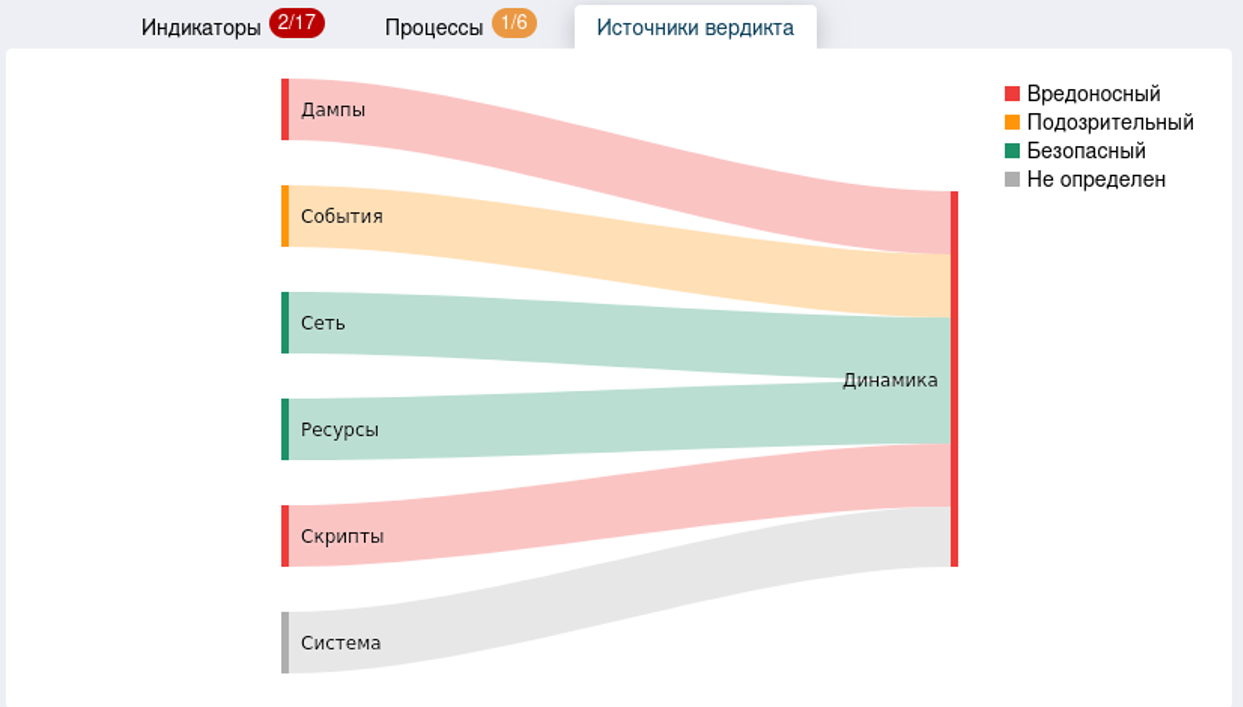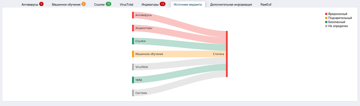С вкладкой «Источники вердикта» стоит просто ознакомиться, она несет в себе информацию о том, какие методы и модули статического анализа выдали вердикт после проверки данного файла.