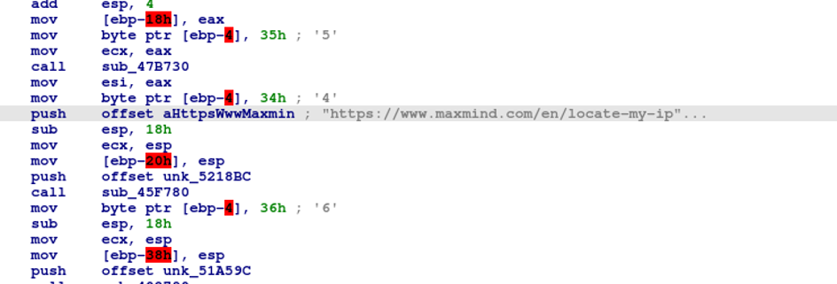 Исследуемый файл устанавливает соединение с легитимным сайтом (https://www.maxmind.com/en/locate-my-ip), получая оттуда информацию об IP- адрессе устройства и его местоположении.