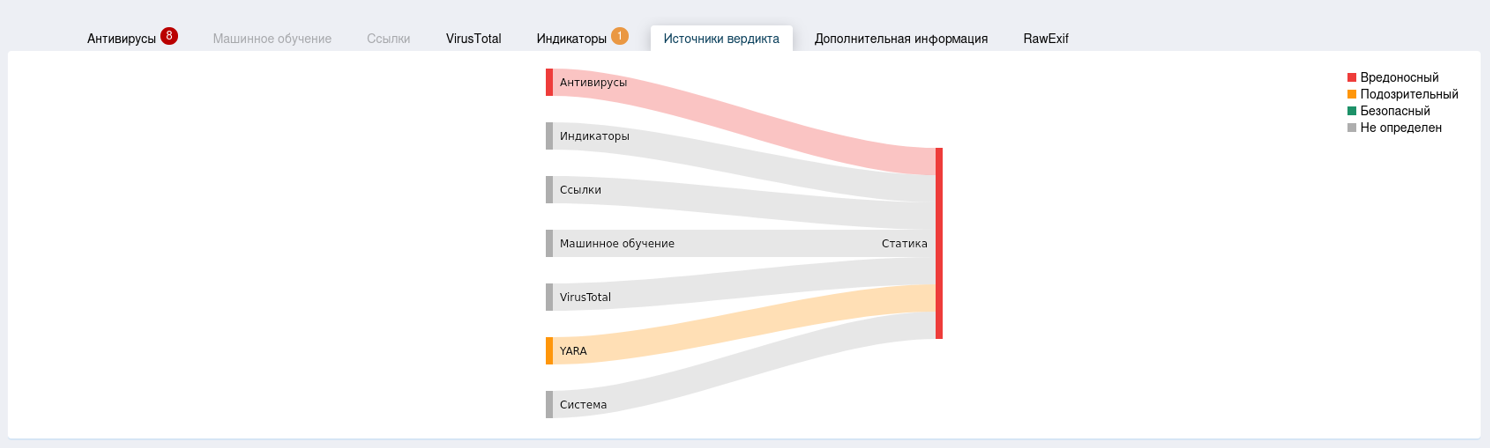 С вкладкой «Источники вердикта» стоит просто ознакомиться, она несет в себе информацию о том, какие методы и модули статического анализа выдали вердикт после проверки данного файла.